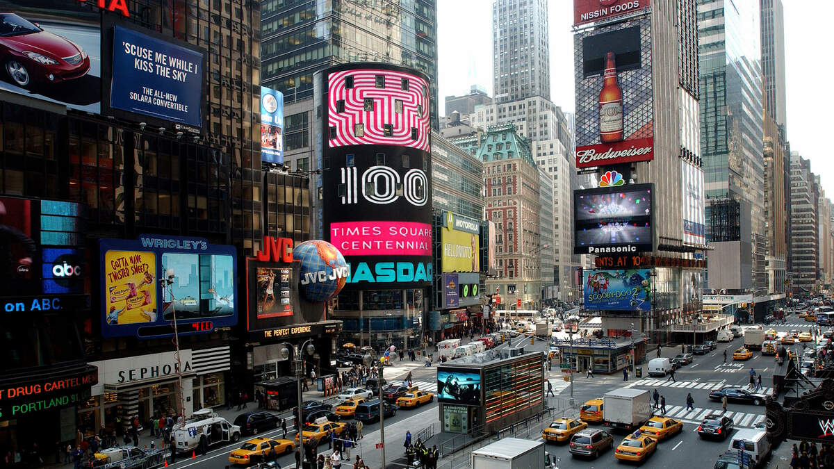 A speeding car drove into a crowd of pedestrians in Times Square.