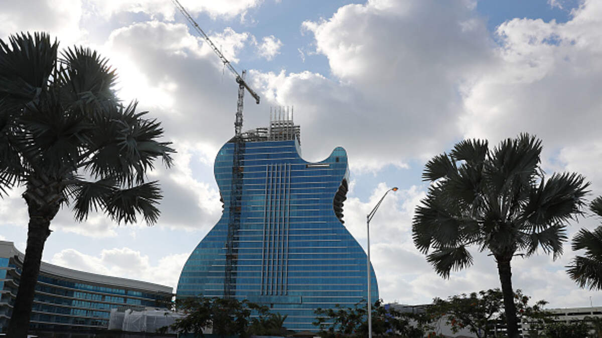 - The $1.5 billion Seminole Hard Rock Hotel & Casino project is complete. The world’s first guitar shaped hotel is ready for its grand opening. It features 638 rooms, 19 restaurants, stands 450 feet tall and a 13.5-acre lake complete with cabanas and kayaks.