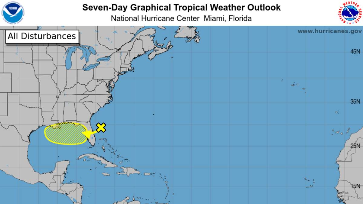 - The National Hurricane Center is tracking a disturbance that’s currently crossing Florida from the Atlantic towards the Gulf. The system is currently given a 30% chance for development as it tracks westward along the northern Gulf.